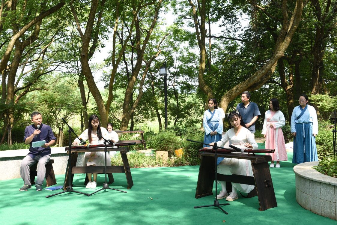 本网讯 5月19日,“冷水滩5.19中国旅游日”活动在冷水滩蔡市镇邓家铺村潇湘文化园举行。国学院九疑古琴社师生欧阳平彪、屈梦君、刘思捷、邱玲等人演唱了琴歌《湘妃思舜》和琴箫合奏《阳关三叠》,向大众展演了九疑古琴派的独特风采,赢得了大家的一致喝彩。
