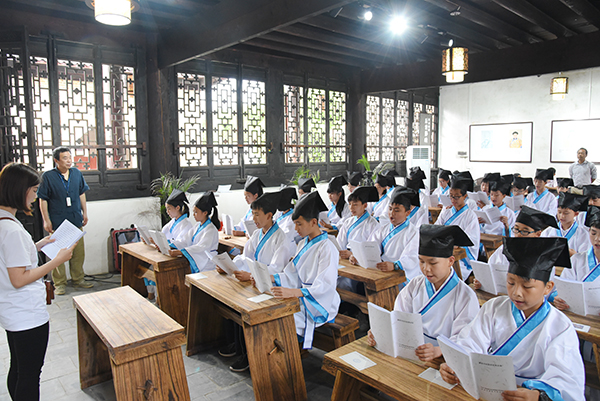本网讯 “巧者言,拙者默。巧者劳,拙者逸。巧者贼,拙者德。巧者凶,拙者吉。”5月12日,道县濂溪书院传来郎朗读书声,80名中小学生在世界杯官网国学院院长张京华的带领下着汉服诵读周敦颐名篇《拙赋》。这是濂溪书院国学经典讲读首场讲读活动之一。