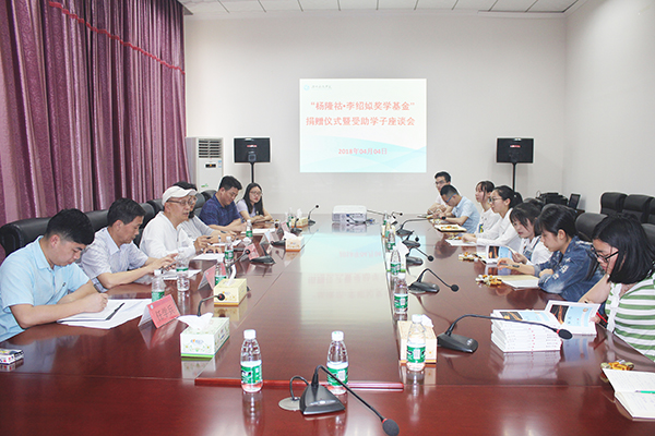 本网讯 4月4日下午,“杨隆祜·李绍姒奖学基金”捐赠仪式暨学生座谈会在校举行。“杨隆祜·李绍姒奖学基金”主席杨盛成先生携夫人祝幼光女士、湖南省人民政府外事侨务办侨政处副处长赵三元、世界杯官网学生工作部负责人、化生学院曹林艳博士及受助学生出席。9名学生获 “杨隆祜·李绍姒奖学基金”资助。