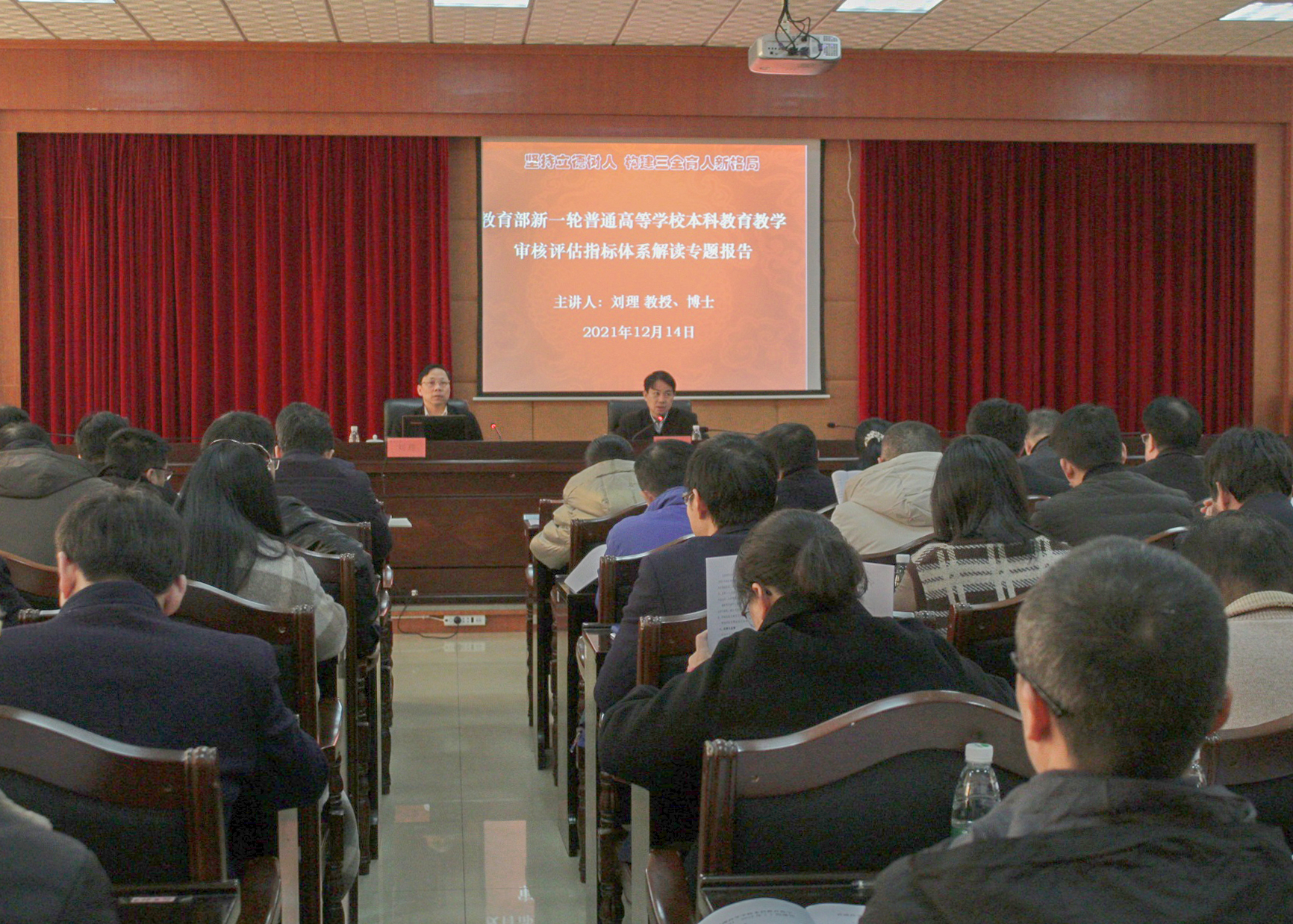 本网讯(记者 江美旗)12月14日下午,世界杯官网开展新一轮普通高等学校本科教育教学审核评估指标体系解读专题报告。本次报告会主讲嘉宾为教育部本科教育教学审核评估专家、湖南理工学院教育科学学院院长刘理教授,党委委员、副校长李常健出席并主持培训会。