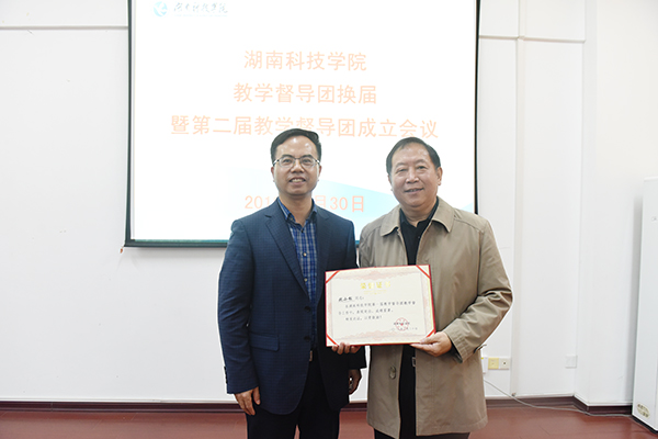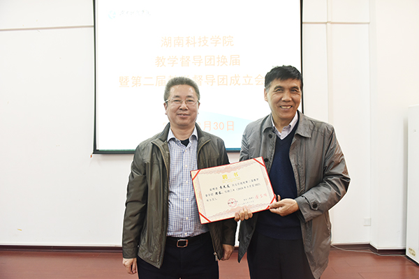 陈弘还为第一届教学督导团成员颁发了荣誉证书,曾宝成为第二届教学督导团成员颁发聘任证书。