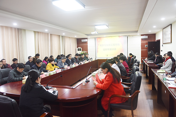 本网讯 12月27日下午,党委书记陈弘、副校长郑山明带领着人事处、组织部、党政办、教务处、发规处、科技处等部门负责人,专程来到化学与生物工程学院召开迎新年座谈会,看望慰问全体教师,共同回顾2017,展望2018。