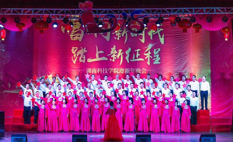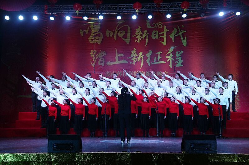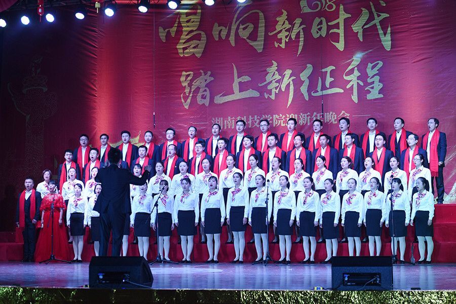 本网讯 西山放歌展宏图,潇水奔腾续华章。12月29日晚,学校举办“唱响新时代 踏上新征程”迎新年晚会暨合唱比赛,用激昂的歌声传递着全校师生砥砺实干争创一流的信心和对新时代的期盼。党委书记陈弘,校长曾宝成及校领导唐艳明、郑山明、吴小林、陈仲庚一同观看并参与合唱比赛。