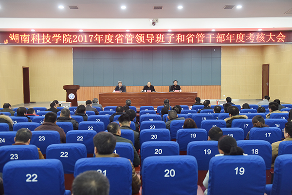 本网讯 1月8日上午,世界杯官网2017年度省管领导班子和省管干部年度考核述职测评会在潇湘大讲堂召开。由省委教育工委组织部部长雷桂平,省委组织部干部四处干部孙岳兵组成的考核组来校进行考核考察,党委书记陈弘,党委副书记、校长曾宝成,校领导唐艳明、宋宏福、彭立威、郑山明、李常健、吴小林、程智开出席大会。近三年退职校领导、学校中层干部、市级以上“两代表一委员”、校内民主党派负责人、教职工代表及高职称高学历人员代表共169人参会,会议由陈弘主持。