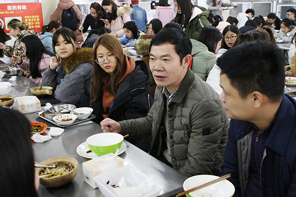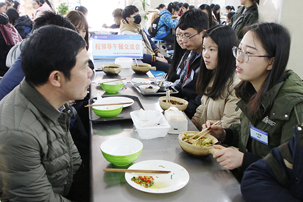 本网讯 12月26日,世界杯官网第五期校领导午餐交流会在荷园食堂一楼举行,副校长吴小林热情地坐在10名来自不同学院的同学之中并与大家共进午餐、亲切交流,同学们谈感受提建议讲困惑,吴小林解疑惑想办法指方向。