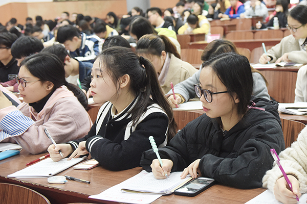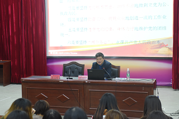 本网讯 11月28日晚,校党委副书记、党校校长唐艳明以《坚持党的先进性和纯洁性 争做合格共产党员》为题,在明德楼一楼报告厅为212名党员发展对象讲了一堂精彩的党课。
