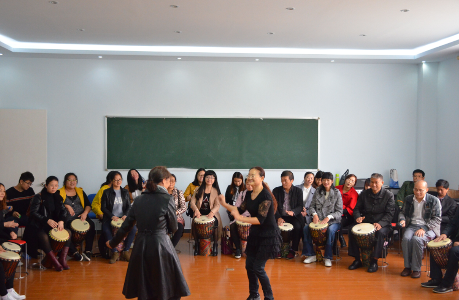 学校针对维护留守儿童心理健康的需求,充分发挥音乐专业的学科优势,组织参与国培计划的教师们进行“鼓圈”培训,提高乡村教师的工作能力,以便今后更好开展留守儿童心理辅导工作。参与现场体验的教师们对鼓圈活动给留守儿童的裨益给予相当的肯定,大家纷纷表示:“农村留守儿童亟需心理关爱,这种互动参与性的团体活动,既好玩有趣又有效,非常适宜广泛推广,一定会受到孩子们的欢迎!”