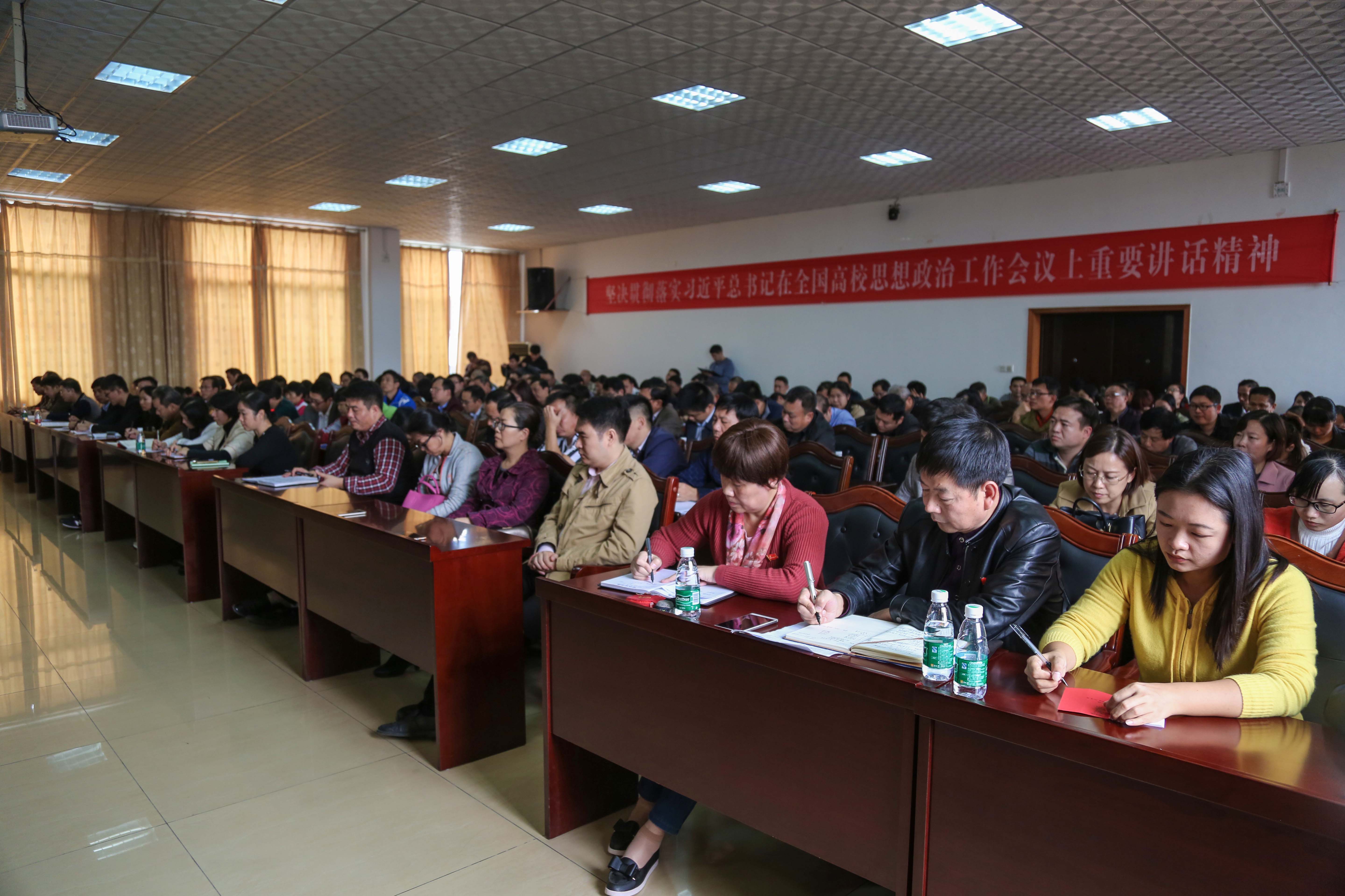 本网讯 党的十九大刚刚胜利闭幕,为深入推进全面从严治党,进一步加强工作作风建设,强化全体机关工作人员纪律观念,提高工作效能,10月25日下午,学校举行机关工作人员大会。党委书记陈弘,校党委副书记、校长曾宝成及全体在家校领导、全体机关工作人员参加会议。会议由党委副书记唐艳明主持。