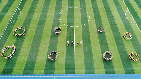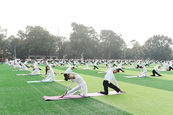伴随着观众的阵阵掌声,彰显青春风采的瑜伽表演精彩呈现。由全校200位瑜伽爱好者为全校师生带来了“双人瑜伽表演”,他们步调一致,或高举,或下压,或斜顶,刚柔并济、动静结合,表演如行云流水,使观者心思沉静。啦啦操则点燃了在场观众的激情,热烈的欢呼声响彻全场。每一位表演者用自己的热情感染着现场观众,绽放属于自己的青春。