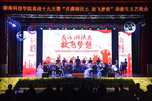 本网讯 10月16日晚,学校举行喜迎十九大暨“在潇湘沃土 放飞梦想”迎新生文艺晚会。校党委书记陈弘,校长曾宝成,校党委副书记唐艳明,副校长宋宏福,纪委书记彭立威,副校长程智开出席观看晚会。