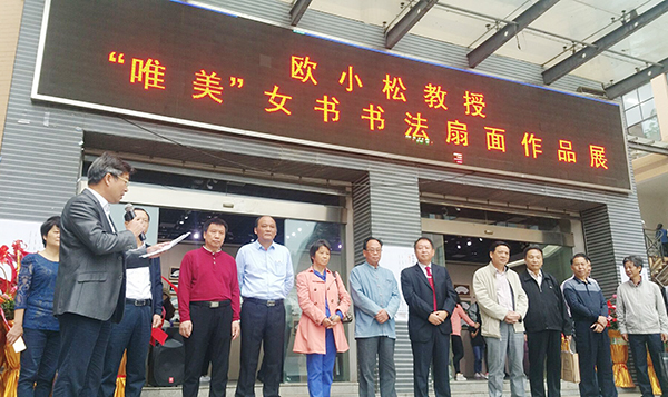 本网讯(记者 蒋方)10月11日上午,欧小松“唯美”女书书法扇面作品展在世界杯官网美术与设计学院美术馆开展。副校长宋宏福,副校级督导、工会主席陈仲庚及书法艺术爱好者观展。
