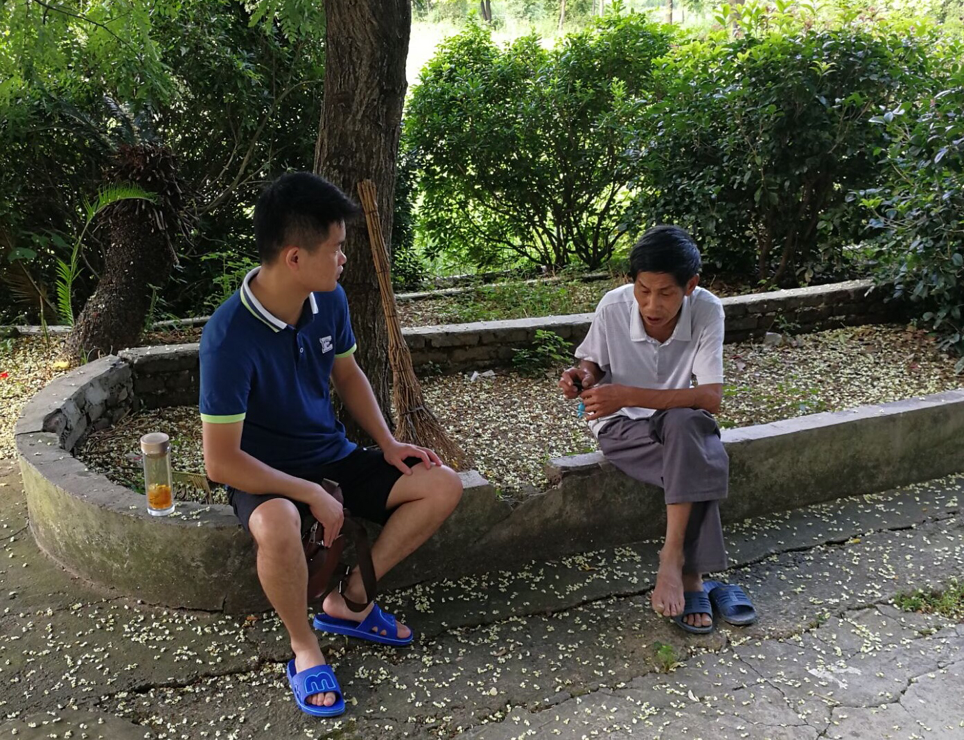 三井镇位于湖南省新田县南部约14公里,师生三人深入茂家居委会、石坠、罗溪三个村庄进行走访。通过实地调研、座谈交流、入户采访、数据统计、查阅资料等的形式,收集到大量的第一手资料。在石坠村一位张姓大爷说国家的扶贫政策力度逐年加大,村村通路通电通水,农民医疗教育有保障,老百姓的生活较以前有大幅改善。走访茂家居委会困难群众李奶奶家,她告诉志愿者通过参加政府组织的农民学校免费培训,儿子和儿媳掌握了一技之长,现在在广东打工,务工性收入增加,建房政府有补贴家里建起了房。李奶奶高兴的说,去年孙子还考上了大学,党和国家政策好,农民享福利。
