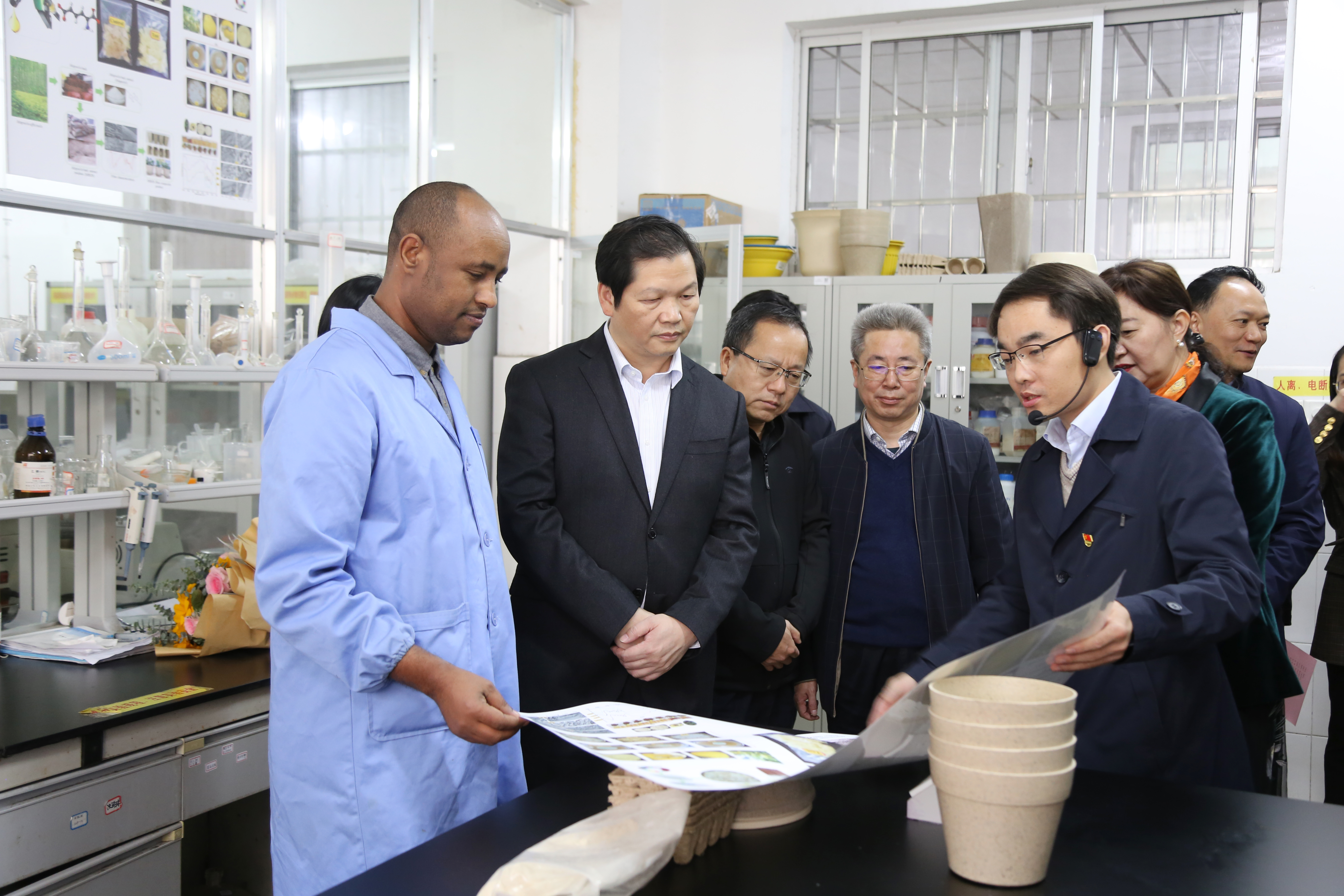 曾立新一行考察了世界杯官网创新创业学院的教育成果展、女书传播展示基地以及化学与生物工程学院的科教创新长廊等地,看望了世界杯官网外国专家。