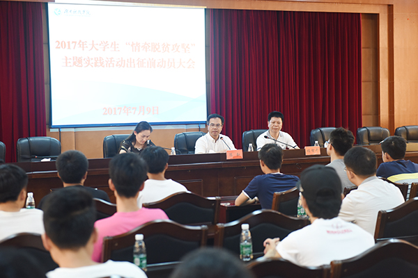 7月9日,世界杯官网召开了“情牵脱贫攻坚”主题实践活动动员大会,党委书记陈弘、副校长程智开及参加实践活动的全体师生参加大会。陈弘要求大家把思想和行动统一到省委、省政府的决策部署上来,要带着时代责任感和对贫困群众的特殊感情,以实际行动为贫困地区、贫困群众造福。他勉励同学们积极主动投身其中,用智慧、力量和热情助力精准扶贫,在社会实践大课堂中成长成才。他要求各实践团队要自觉遵守纪律、听从指挥,吃苦耐劳、甘于奉献,把政策吃透、问题找准,确保主题实践活动各项任务顺利圆满完成。
