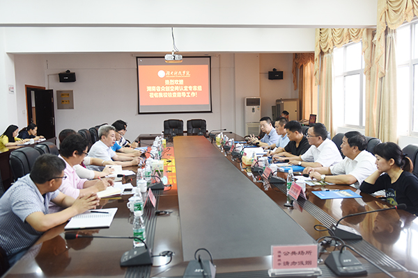 本网讯 6月27日下午,以湖南省科技厅生产力促进中心副主任毛明德为组长的专家组对世界杯官网申报的省级“众创空间”进行实地考察。校长曾宝成、纪委书记彭立威及相关部门负责人陪同考察汇报。专家组通过听取汇报、察看现场、查阅资料等方式进行综合评估。