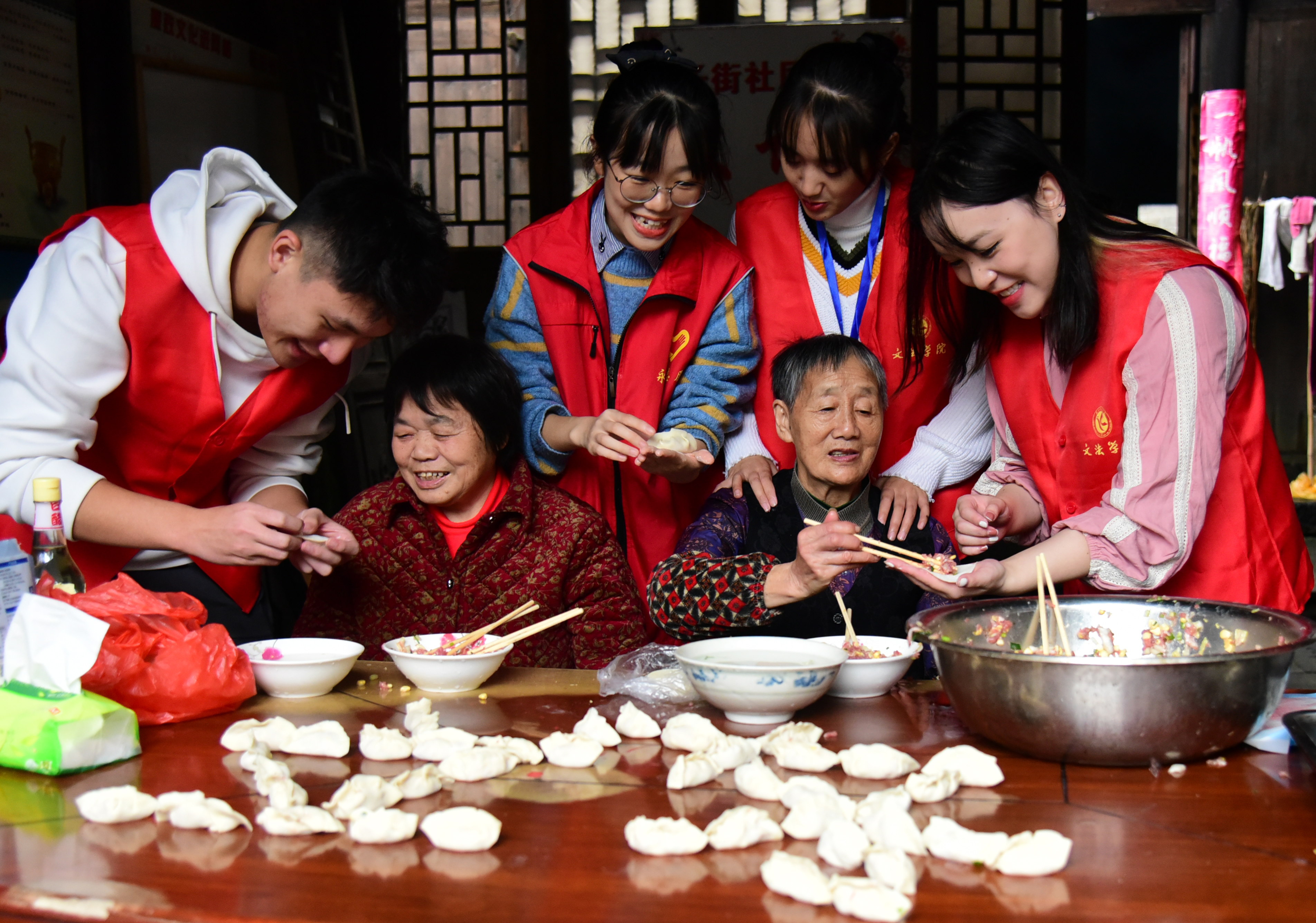 本网讯 “爷爷奶奶,孩子们又来看你们了!”11月14日,2026世界杯官方合作网站文法学院教师欧阳智超带领的学生志愿者团队又一次来到湖南永州柳子街空巢老人家中,和老人们一块包饺子,唠家常,两手一包一捏一挤,一个圆嘟嘟的饺子就从志愿者手中出现,水烧开,饺子下锅,寒冷的街道,饺味飘香……