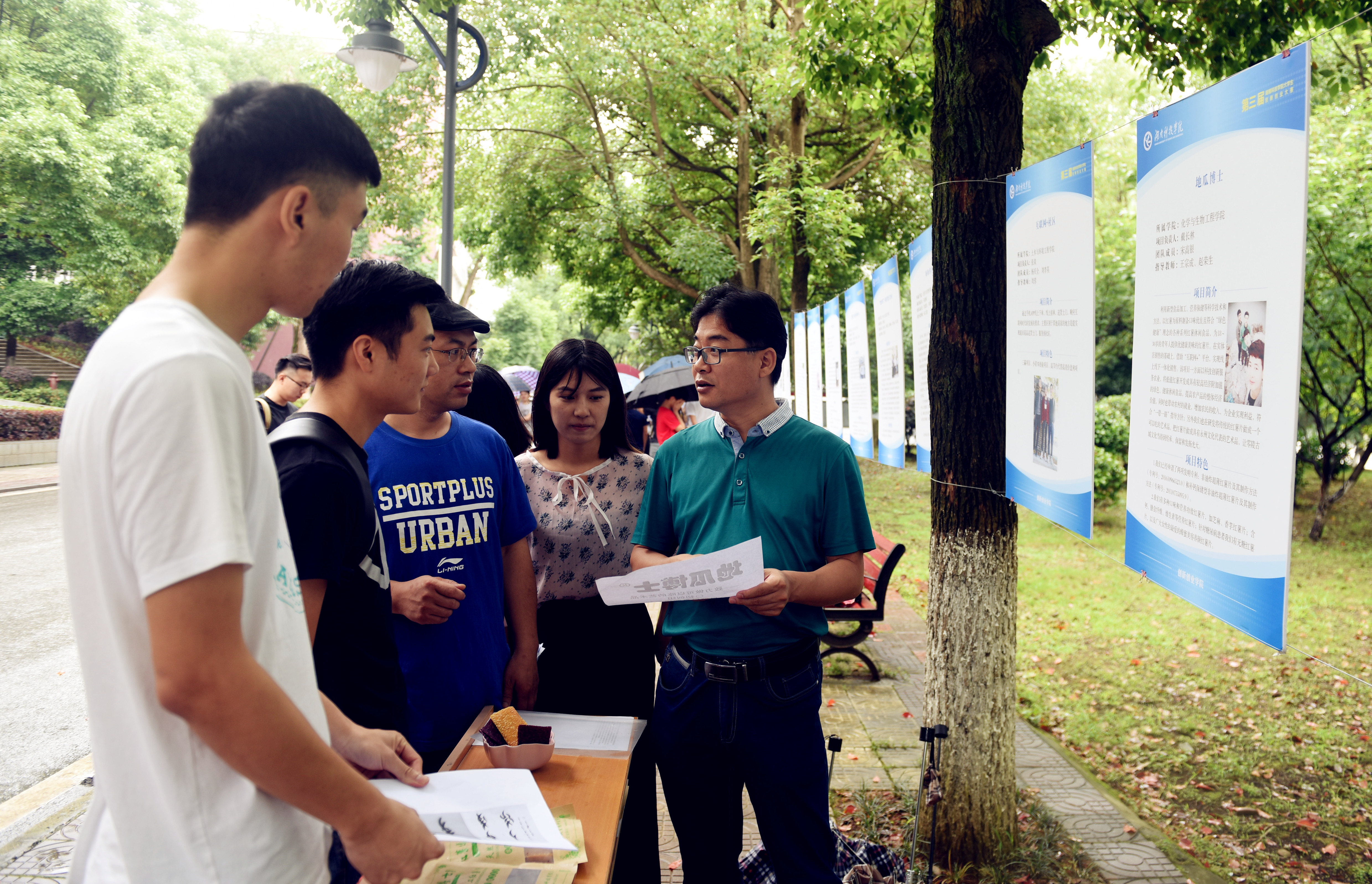 选手们自信满满、从容干练的介绍赢得了观众的阵阵掌声。“去年我们的销售额达到了线上25万线下20万的成绩。” “地瓜博士”区分传统的地瓜,运用激光切割技术和VR虚拟技术,与地方旅游特色相结合,糅合当地习俗特点,使之具有风俗化,产品在不断的研发升级中,精致的外观和深厚的文化底蕴让“贫穷”的地瓜一跃成为送礼佳品。“你们这个创意很不错,还能带动旅游产业发展,如果能将3D打印技术运用到其中,这个产品的含金量会更大。”专家评委给出自己的建议。“绘世界”手绘作品的展示引起比赛的一个小高潮,现场观众情不自禁地发出阵阵惊叹,惊叹于美术学院选手的精湛画艺,银杏茶、湘科节能材料研发中心等项目也凭借其创意和理念也纷纷获得评委老师和观众的一致好评。