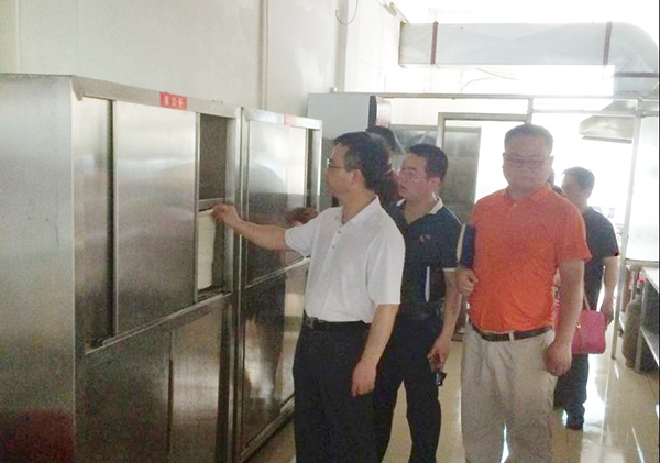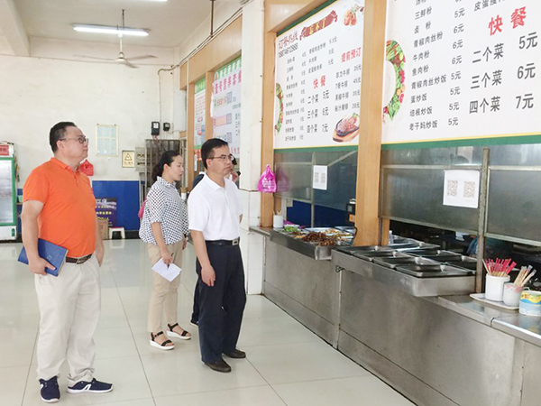陈弘深入细致地实地查看各个食堂,他认真查看了厨房操作间、餐具消毒间等地,详细检查各食堂的食品留样、日常采购等执行情况,同时,他还深入学校各个超市和水厂进行了督查和了解。