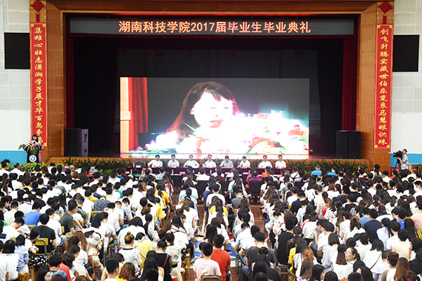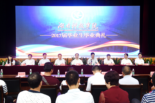 毕业典礼由2017届毕业生徐翔主持。 毕业典礼上音乐与舞蹈学院乐队现场演奏毕业交响乐。充满温情回忆的科院版《成都》和视频短片《湘科院,带不走的只有你》,更是勾起了毕业生们对大学生活的无尽留恋。