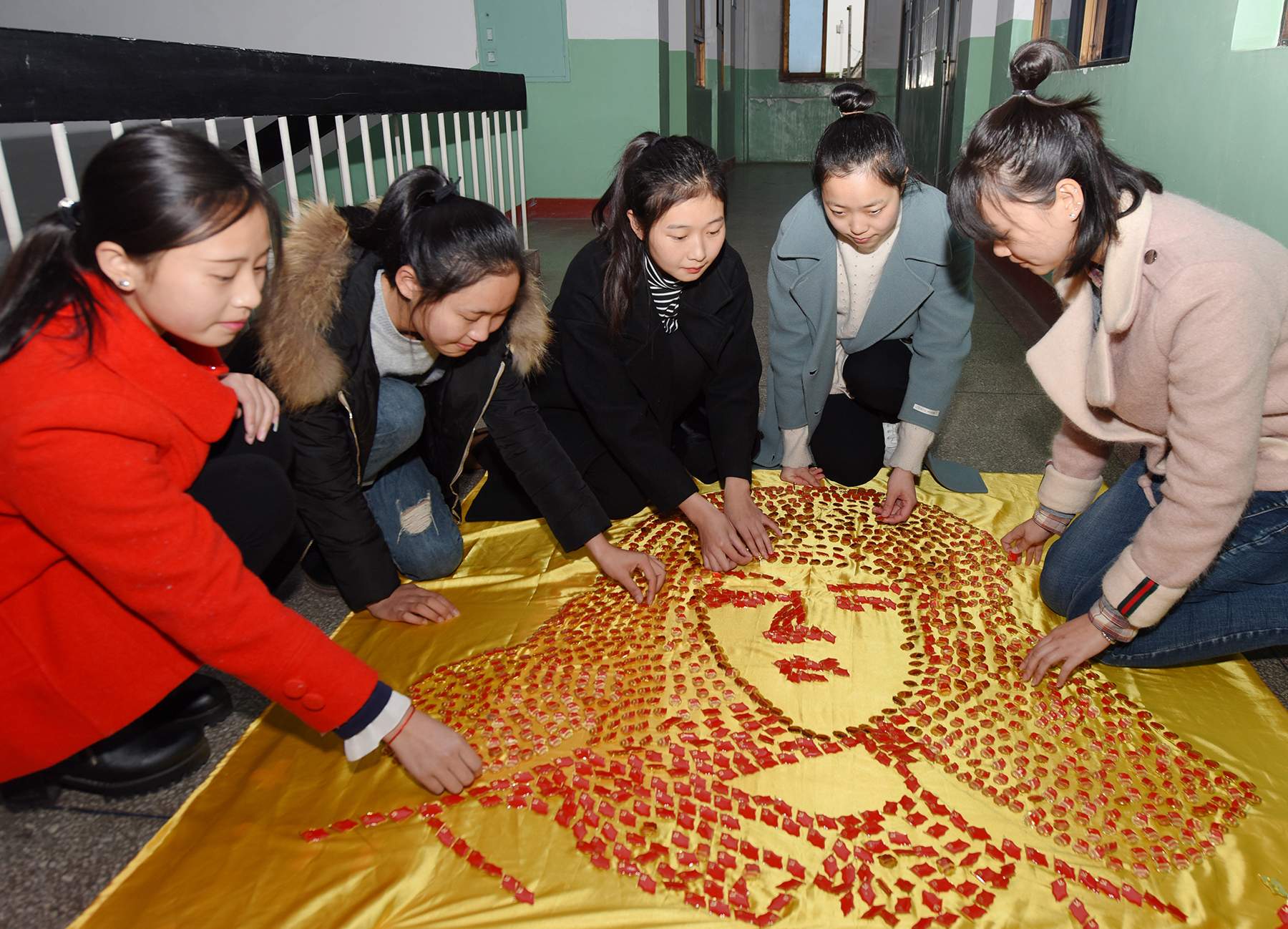 本网讯 3月6日,由党委宣传部与人文学院共同策划,用1300余枚党徽和团徽创作的“雷锋”画像作品完工。