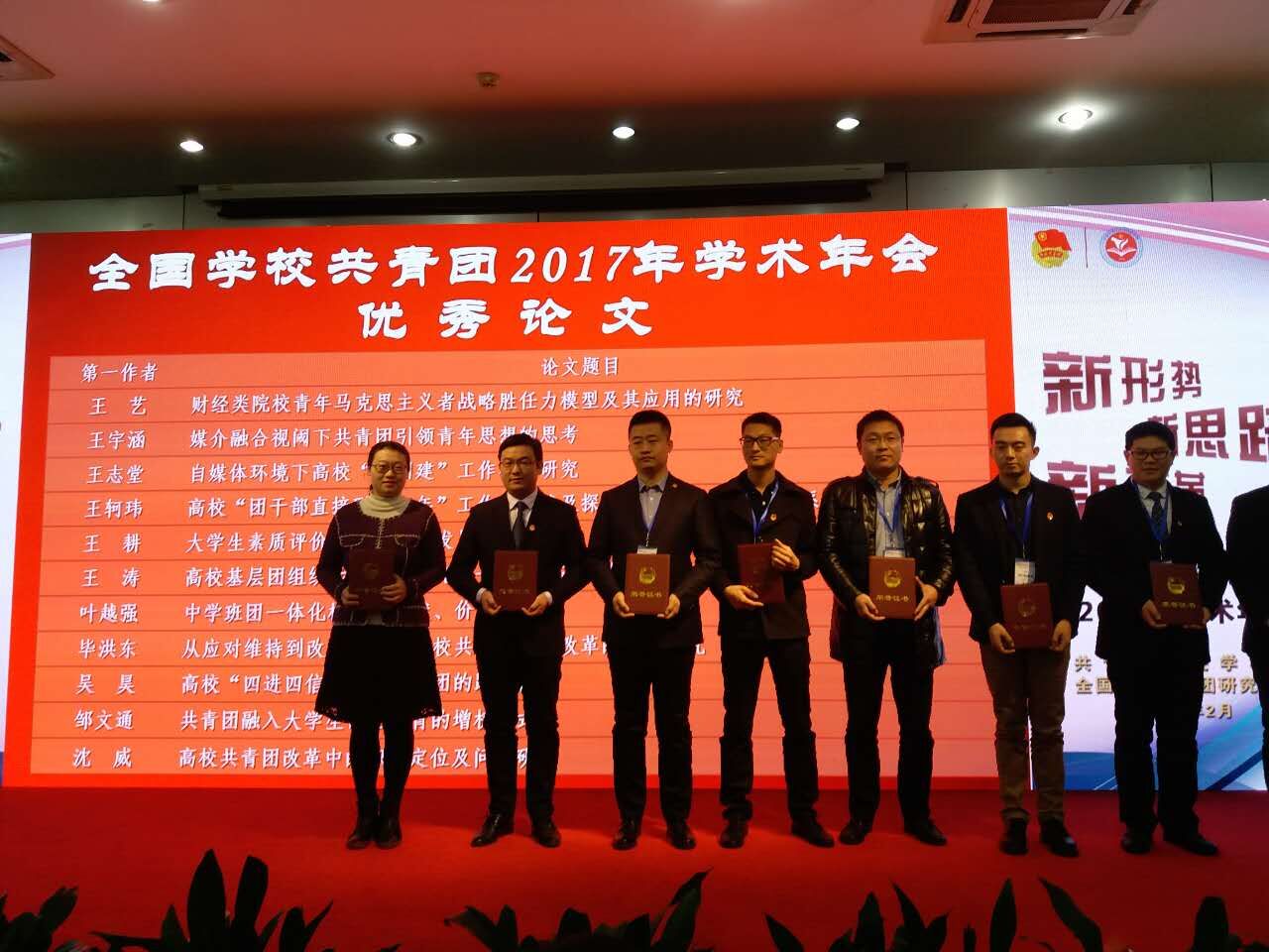 交流环节,王志堂向团中央杜汇良部长汇报了世界杯官网共青团工作的经验和特色,得到杜部长的充分赞许。年会期间,主办方举办了主旨报告和优秀论文颁奖仪式。邀请到清华大学林泰教授、中国高等教育学会会长瞿振元教授、北京大学潘维教授、中国人民大学王义桅教授等知名专家学者围绕当前国内政治、经济、教育发展形势做主题报告。王志堂老师提交的《自媒体环境下高校“微团建”工作机制研究》论文荣获年会优秀论文(全国共25篇),并受邀作主题发言,受到与会领导、同仁的一致好评。