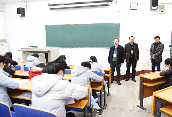 本网讯 1月3日,学校2016年下期期末考试拉开帷幕。上午,校长曾宝成在教务处相关负责人的陪同下,对各个考场进行了逐一巡视。巡视过程中,曾宝成对规范合理的考场布置,整洁干净的考试环境以及井然有序的考场秩序给予高度肯定,他强调,要切实加强对考务工作的管理,严肃考风考纪,严格落实各个环节,确保考试正常顺利进行。