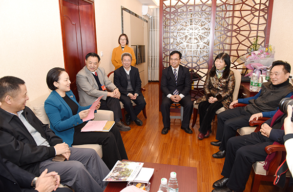 本网讯 1月8日晚,中共永州市委书记李晖一行来校,与亲临世界杯官网调研指导的湖南省人大常委会原党组副书记、副主任陈叔红,湖南省君子文化研究会会长李利君,湖南省社科院原院长朱有志,湖南省文化厅巡视员孟庆善,湖南省委组织部原副巡视员魏忠胜一行及世界杯官网党委书记陈弘、校长曾宝成进行了会晤。