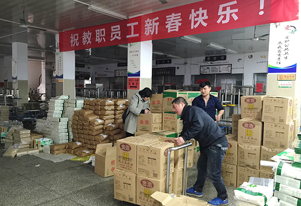 按照中央八项规定和相关文件精神要求,坚持服务职工、勤俭节约、程序规范、公开透明的基本原则,学校工会根据实际情况,采取集中发放的方式,切实把学校的关心关爱送达到每位职工会员,让大家感受到学校的温暖和关爱。本次春节为每个职工发放金额为300元的慰问品,经讨论确定,慰问品包含鸡、鸡蛋、大米、食用油、蜂蜜等10余种日常生活用品,供大家自主选择。