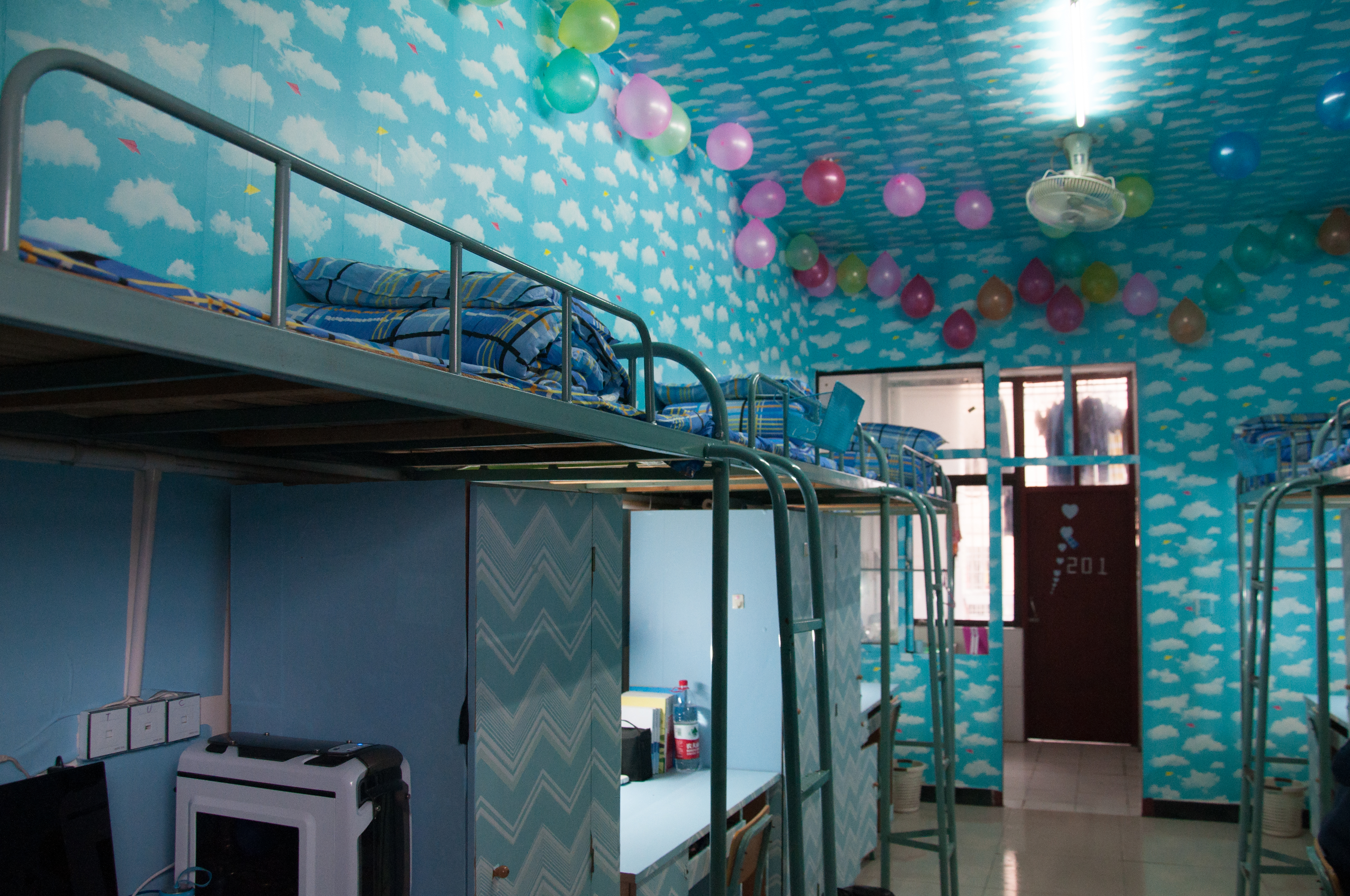 本网讯 干净整洁的小清新、蓝天白云的梦幻,或是满满的书香气,温馨而舒适,乍一听,以为这是某个高大上的梦幻之境,其实,这是美术与艺术设计学院的学生宿舍。