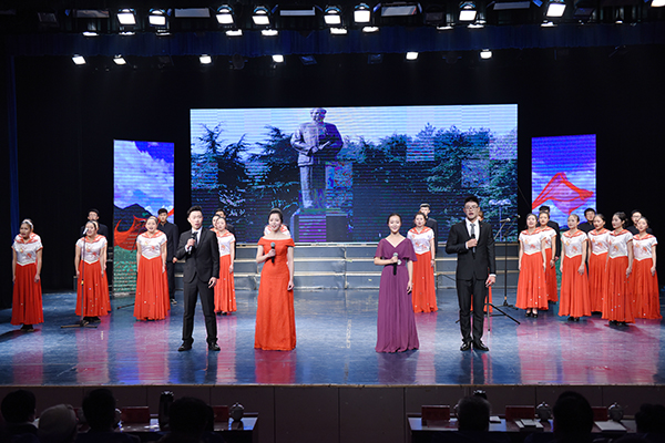 “南风之薰兮,可以解吾民之愠兮。”伴随着气势磅礴的歌伴舞《南风歌》,晚会由此拉开帷幕。开场舞蹈《莲》优美灵动的舞姿展示了学子身上难能可贵的自洁自爱品性,表现了莲“出淤泥而不染,濯清涟而不妖”的高尚品行;歌伴舞《六尺巷》则寓理于歌舞中,将中华礼仪之邦的“礼让三分,与人为善”展现得淋漓尽致;朗诵《追求一种梦想》,慷慨激昂的深切表达,引发现场共鸣;歌曲《天下乡亲》则以真诚感人朴实直白的语言歌颂了舍小家为大家无私奉献的精神,舞蹈《我等你》与维妙维肖的沙画相互映衬,演绎了“孩子永远是母亲心中的牵挂”这一真理,催人泪下;舞蹈《脊梁》则展示了学子的勇于担当。晚会在婉转悠扬的《美在永州》歌声中结束。