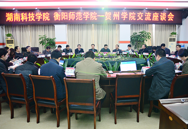 吴郭泉介绍了学校发展的基本概况,重点就校地合作、产教融合、错位发展、特色发展及学校整体定位、布局进行了详细介绍。贺州学院副校长何星存介绍了该校学科建设、专业群建设、人才队伍建设、师资队伍等方面工作的开展情况。