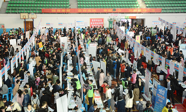 本网讯 12月10日上午,学校举行2017届毕业生供需见面会,8700余名求职者进场寻觅适合自己的“饭碗”,达成初步就业意向1630余人。