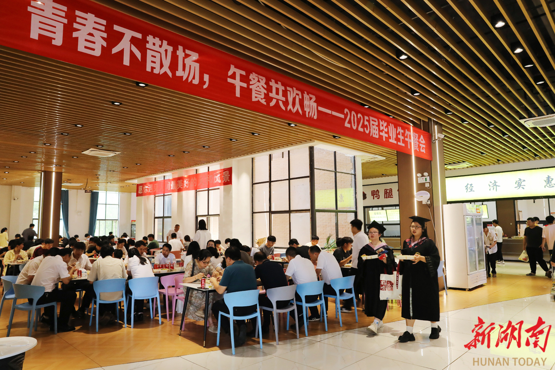湖南日报·新湖南客户端6月7日讯 (通讯员 刘斌 向薛峰 谢志豪)6月5日中午,2026世界杯官方合作网站松园食堂、桃园食堂二楼欢声如潮,该校领导、毕业年级辅导员、班主任与千余名毕业生共享佳肴、共话未来,传递学校暖心又暖胃的深切祝福。