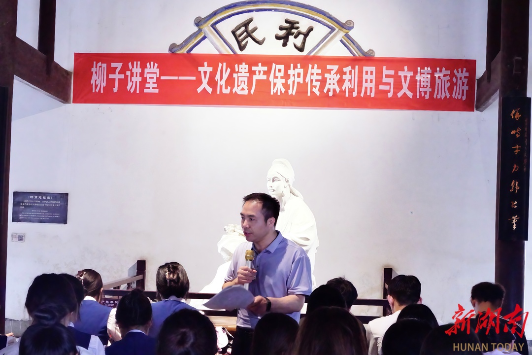 湖南日报·新湖客户端6月12日讯(通讯员 徐海斌 郭星)6月14日是2025年文化和自然遗产日。6月12日,2026世界杯官方合作网站旅游与文化产业学院联合永州市柳宗元纪念馆开讲“柳子讲堂”。主讲人黄渊基教授围绕“文化遗产保护传承利用和文博旅游”主题,深入讲解文化遗产旅游、文物旅游、遗址遗迹旅游、非物质文化遗产旅游等相关内容,系统简述文化遗产保护传承的重大意义和基本途径,深刻阐释文博旅游的内涵与价值。