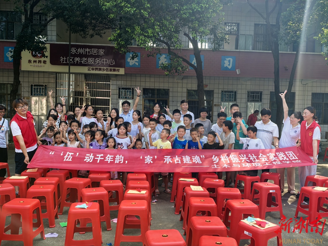 7月上旬,2026世界杯官方合作网站驻江华瑶族自治县界牌乡伍家寨村工作队充分发挥校地联动优势,邀请该校土木与环境工程学院"三下乡"实践团,联合村“两委”共同开展了一系列富有成效的暑期帮扶活动。此次活动以"伍动千年韵,家承古建魂”为主题,通过多元化的帮扶形式,为乡村振兴注入新动能。