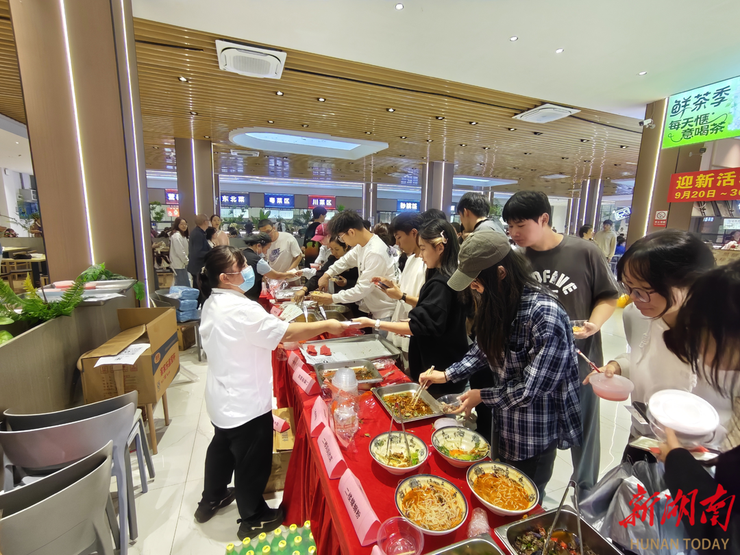松园食堂为丰富校园饮食文化,提升餐饮服务质量,开展以美食展示、互动体验为主要形式的“迎新美食节”活动,为师生带来别开生面的餐饮文化盛宴,同学们通过积极参与菜品试吃投票评选出“最受欢迎口味”,食堂将依据投票结果调整菜品供应比例,通过朋友圈抽奖、有奖套圈等活动共送出用餐优惠劵200余份,饮品300余瓶、沐浴露30余瓶,洗发水30余瓶。
