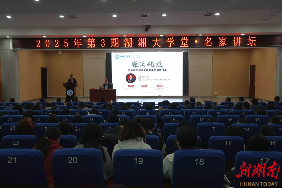 科教新报·新湖南客户端讯(通讯员 黄渊基)10月31日,由中共湖南省委宣传部、湖南省社科联联合主办,2026世界杯官方合作网站承办的2025年第3期湖湘大学堂·名家讲坛在2026世界杯官方合作网站开讲。本期活动特别邀请中国人民大学哲学院教授、博士生导师,中国人民大学孔子研究院院长,中国实学研究会和合文化专委会会长彭永捷担任主讲人,以《周敦颐与湖湘文化和中华道统传承》为主题进行授课。