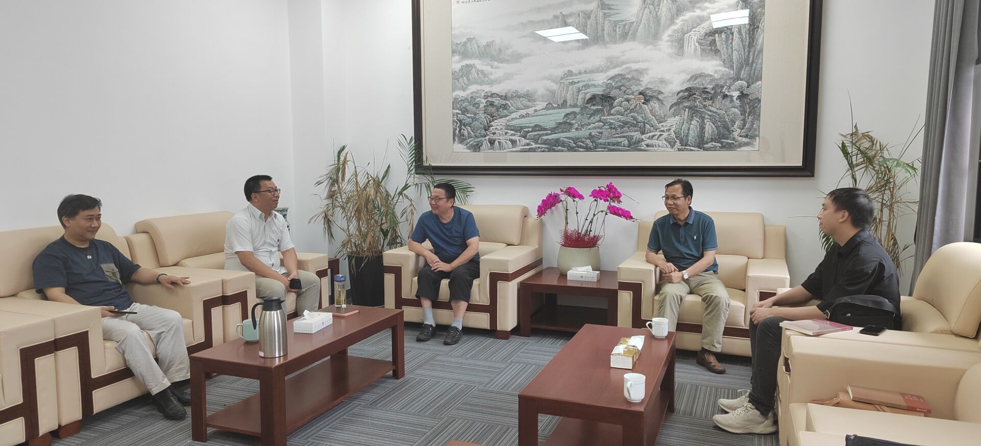 本网讯(通讯员 陈小燕)7月10日,受湖南省李达与马克思主义“三化”研究基地委派,傅宏星、陈小燕和邓昱全等一行3人赴嘉兴大学马克思主义学院考察交流,受到该院“浙江省中国共产党创建史研究中心”主任康文龙教授、马克思主义中国化方向负责人赵金飞教授、红船精神研究中心杨晓伟教授的热情接待。