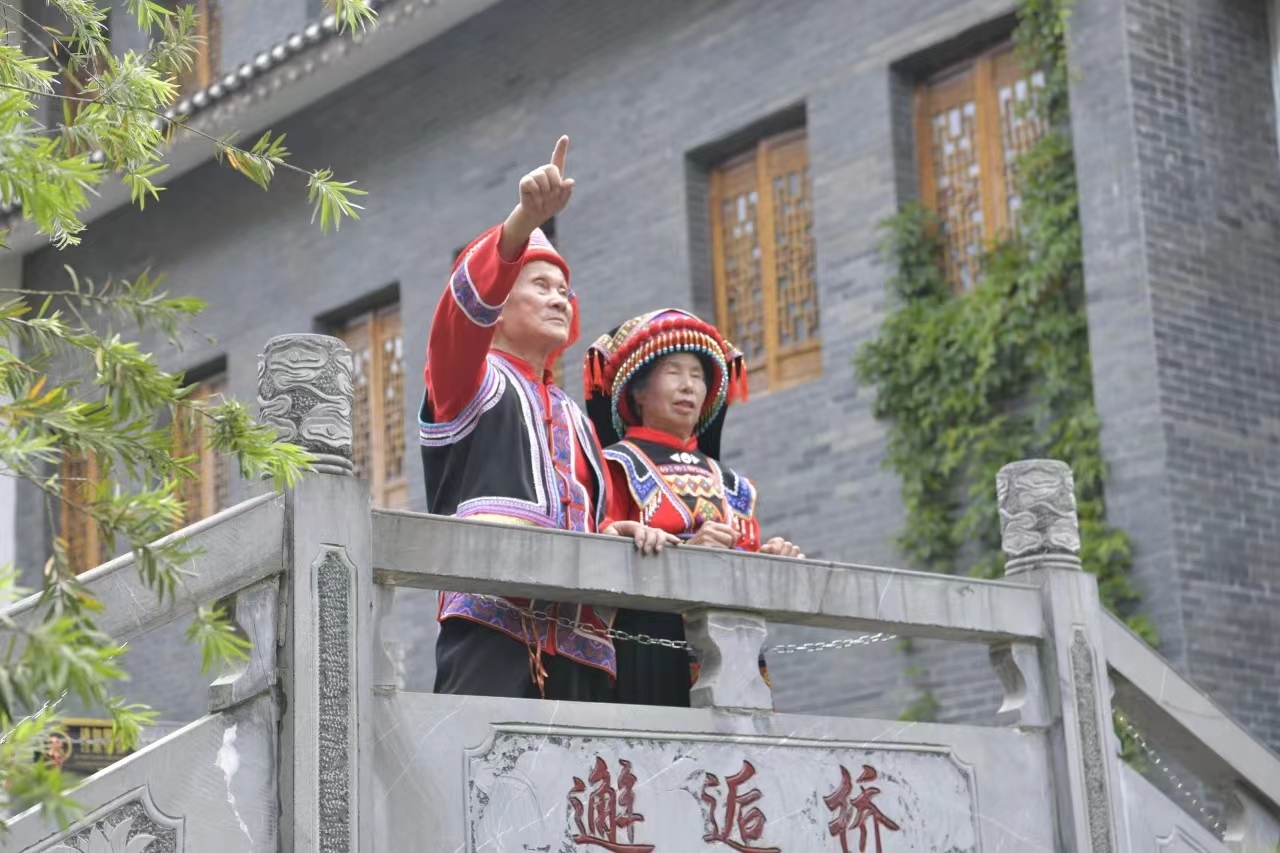 大学生们走进水口镇的瑶医诊室,与102岁的瑶医黄兰英深入交流,黄兰英分享了瑶医的起源、发展以及她个人行医的感人故事,在她的指导下,大学生们亲身体验瑶医特色艾灸,感受瑶医的独特魅力。大学生们还发挥专业特长,为当地一对75岁的老人筹备并拍摄了瑶族特色服饰婚纱照,以此庆祝他们与伟大祖国共同的风雨历程,用照片定格老人最纯真的笑容。