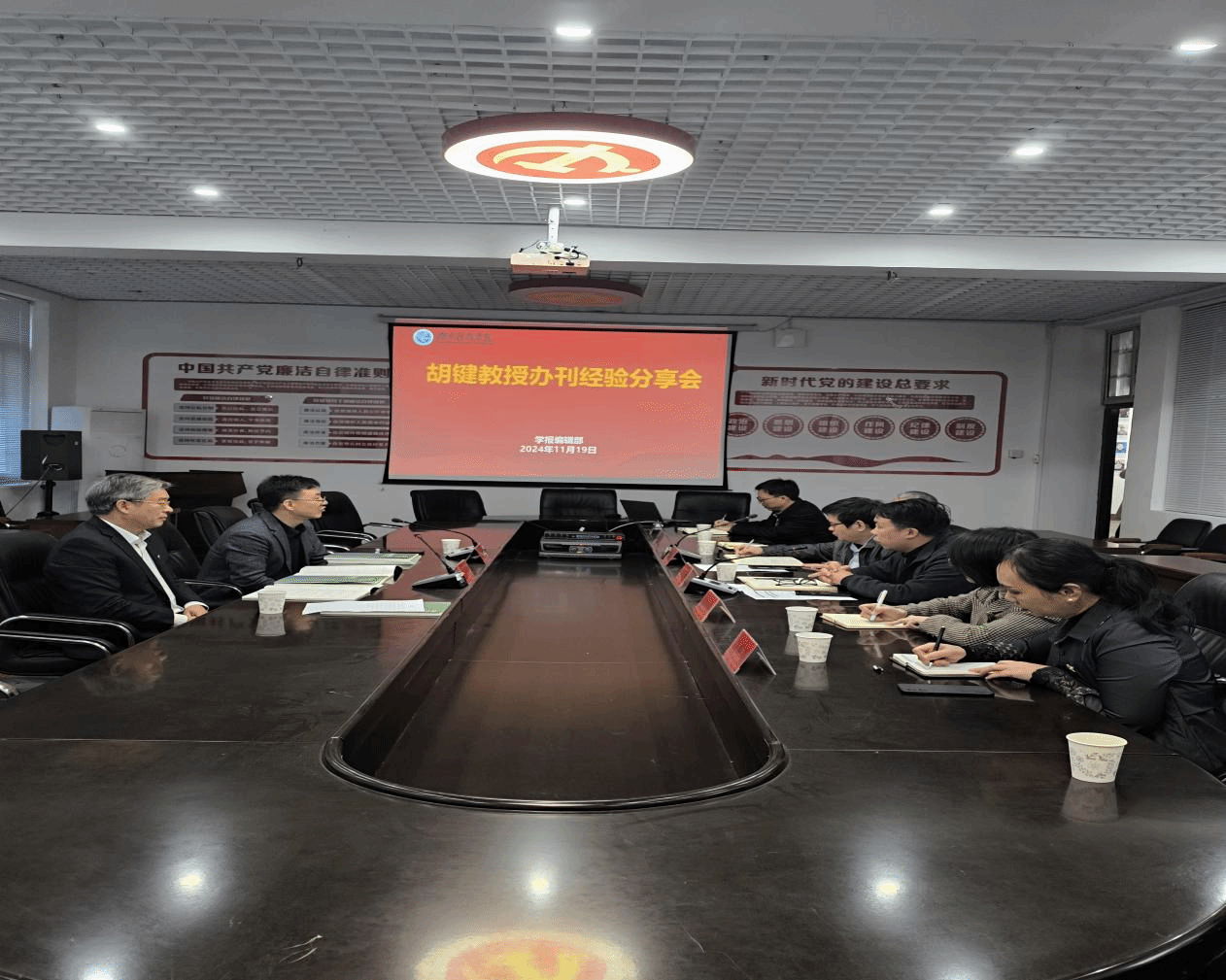 本网讯(通讯员 呙艳妮)11月19日,同济大学博士生导师,原《社会科学》杂志主编胡键教授应邀来世界杯官网学报编辑部参加办刊经验分享会,校党委副书记宋宏福出席分享会,文法学院院长谷显明以及世界杯官网学报编辑部全体人员参加活动。