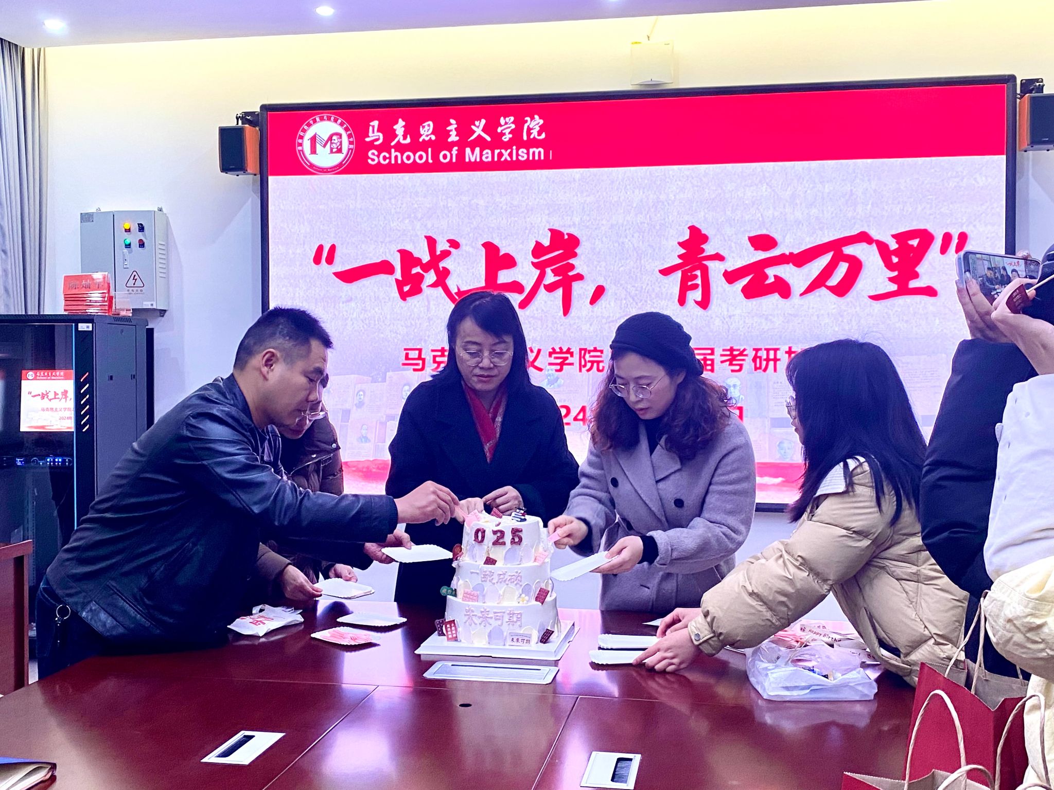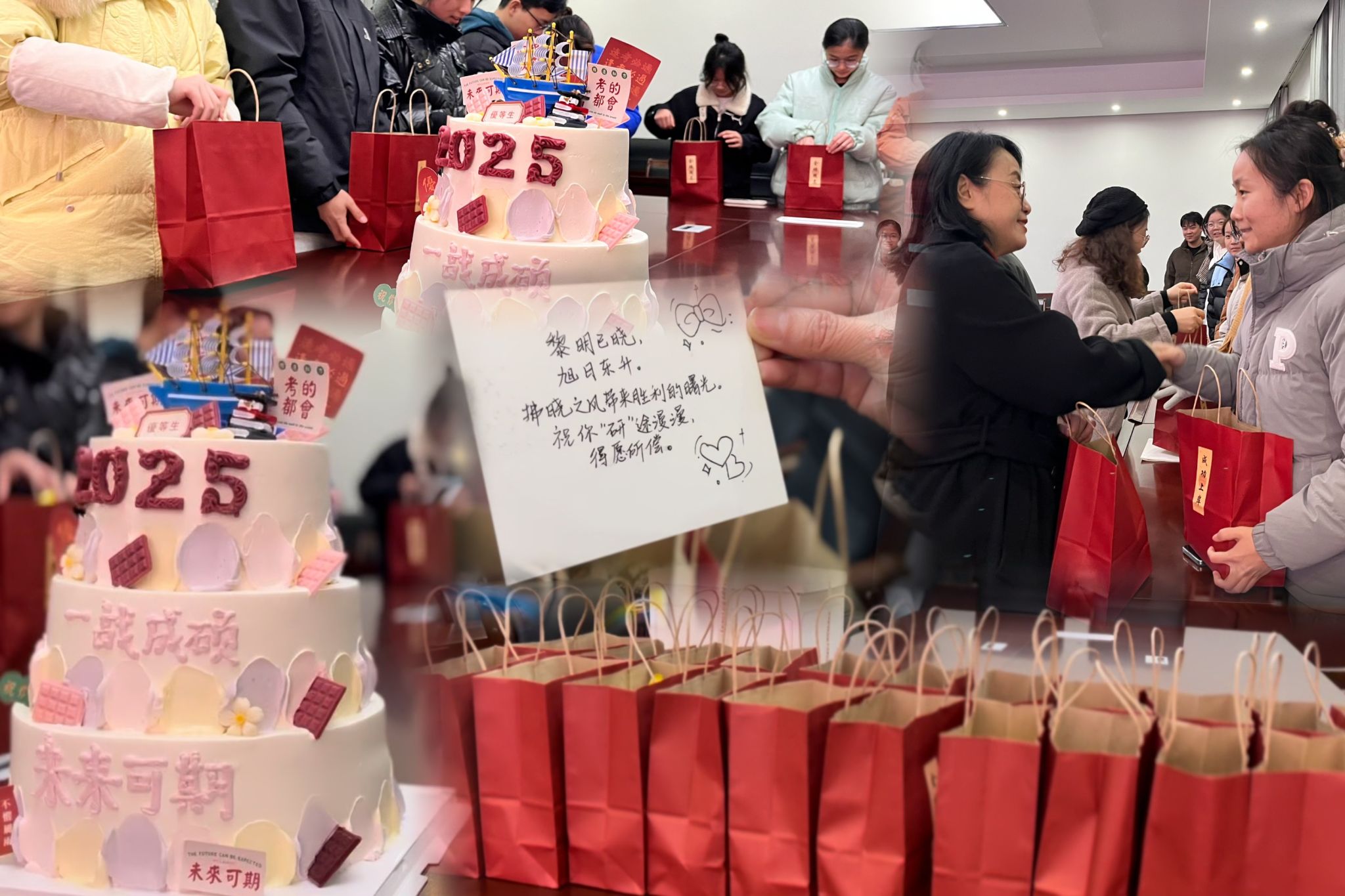 老师们还分别为同学们切分蛋糕,并送上“上岸福袋”,同学们纷纷感谢各位老师的关心与祝福,表示会认真学习,以饱满的热情积极备考。