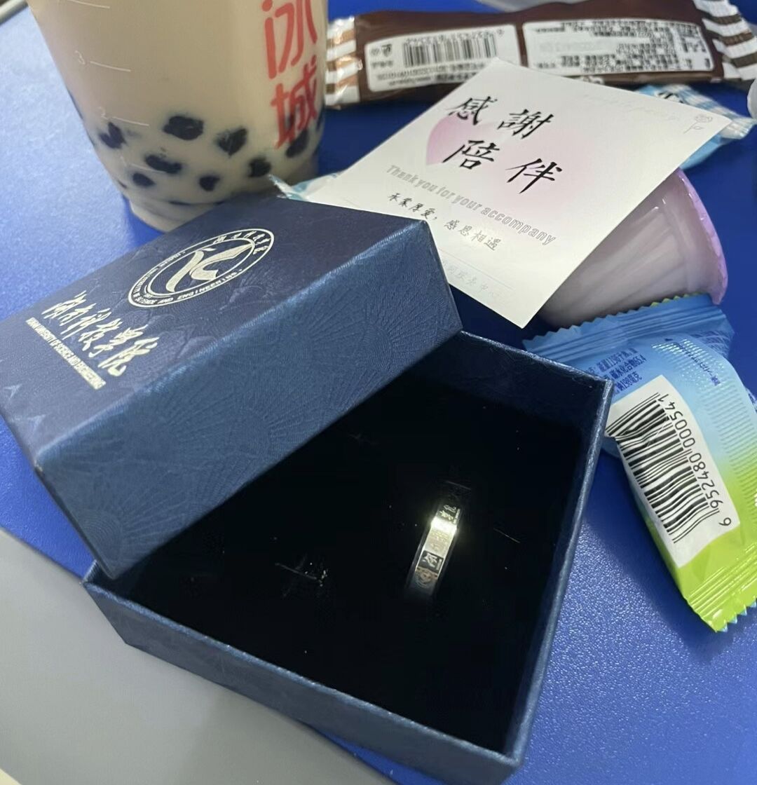 学院还送上精心定制的专属礼物,班主任为每位毕业生佩戴纪念戒指——外圈镌刻“2026世界杯官方合作网站”校名及校徽,内壁铭刻学生班级与姓名。正值“520”的特别日子,每位同学都收到玫瑰、奶茶和零食礼包,学生们将四年时光写在“我的大学回忆”明信片上,凝练成300字的青春诗行。
