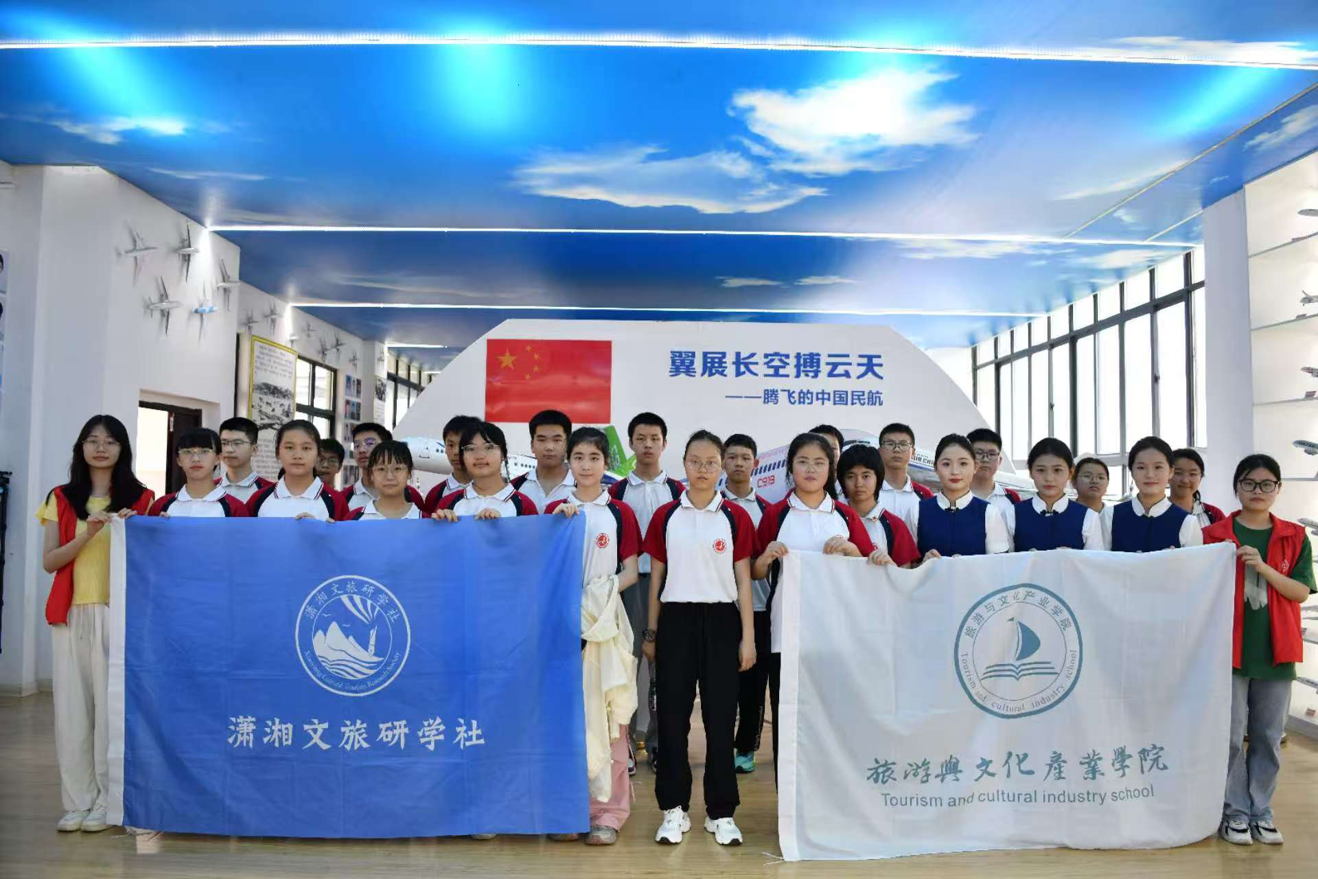 在航空客舱与飞机模型综合模拟实训中心,同学们有序走进模拟客舱,体验了一回“小小飞行员”和“小乘务员”,感受着航空飞行的独特魅力,触摸蓝天梦想。