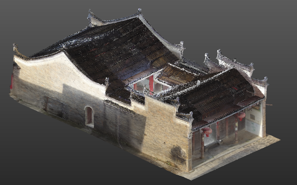 古建筑是乡村文化的瑰宝。实践团队不断创新保护方式,推动数字化技术融入古村落保护。“数字化测绘”专项行动中,实践团在村支两委员会及驻村工作队的协同支持下,采用先进的三维激光扫描技术,对伍氏祠堂及多栋传统民居进行了全面细致的扫描。