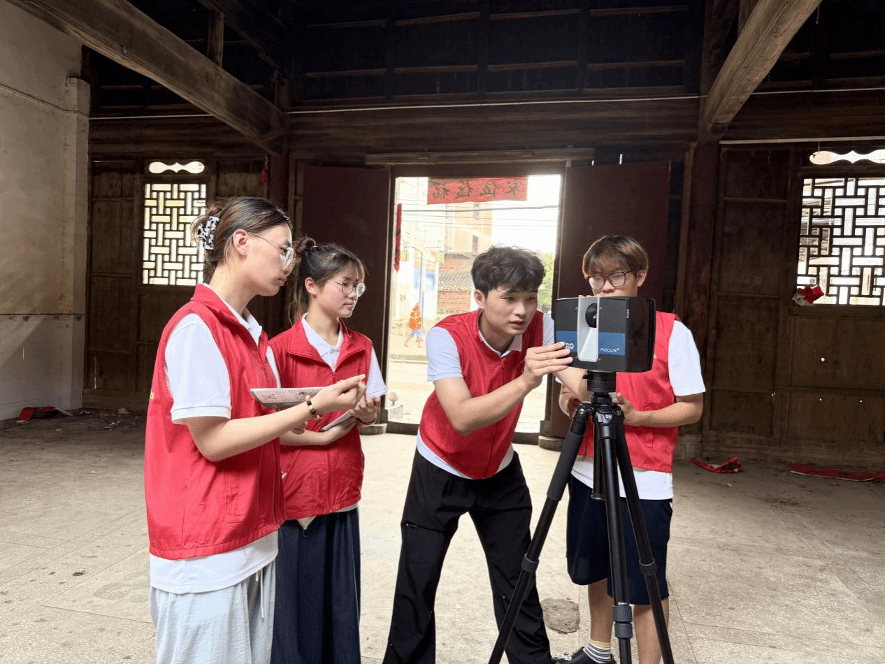 本网讯(通讯员 罗琅贵 蒋思琪)近日,土木与环境工程学院暑期“三下乡”社会实践团前往永州市江华瑶族自治县伍家寨村,开展以“‘伍’动千年韵,‘家’承古建魂”为主题的系列实践活动。实践团充分发挥专业优势,运用三维激光扫描等数字化技术,对伍家寨古村落进行精准测绘与数字化存档,为古建筑保护与乡村旅游发展注入科技力量。