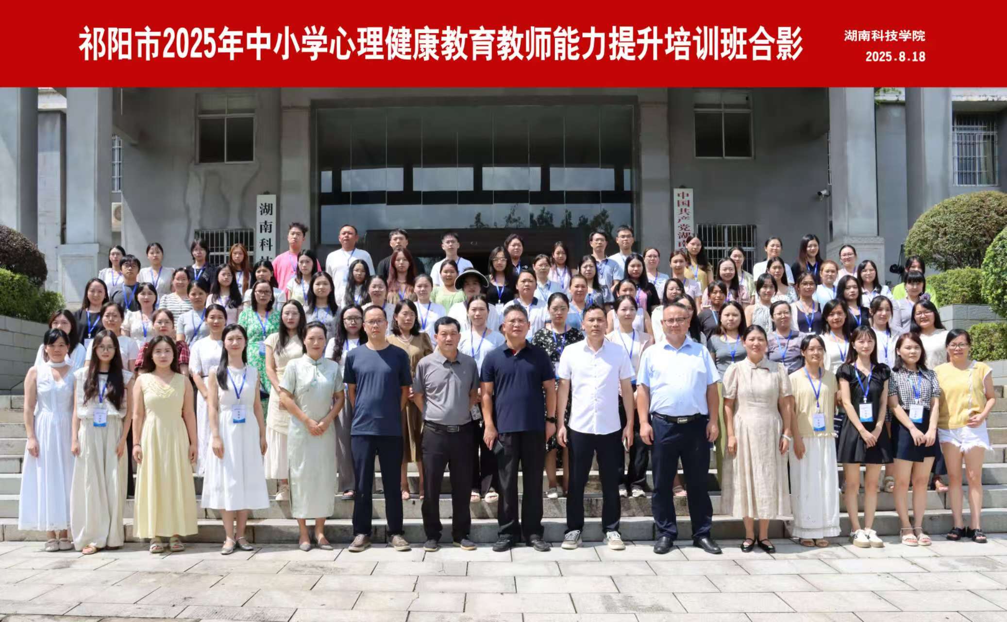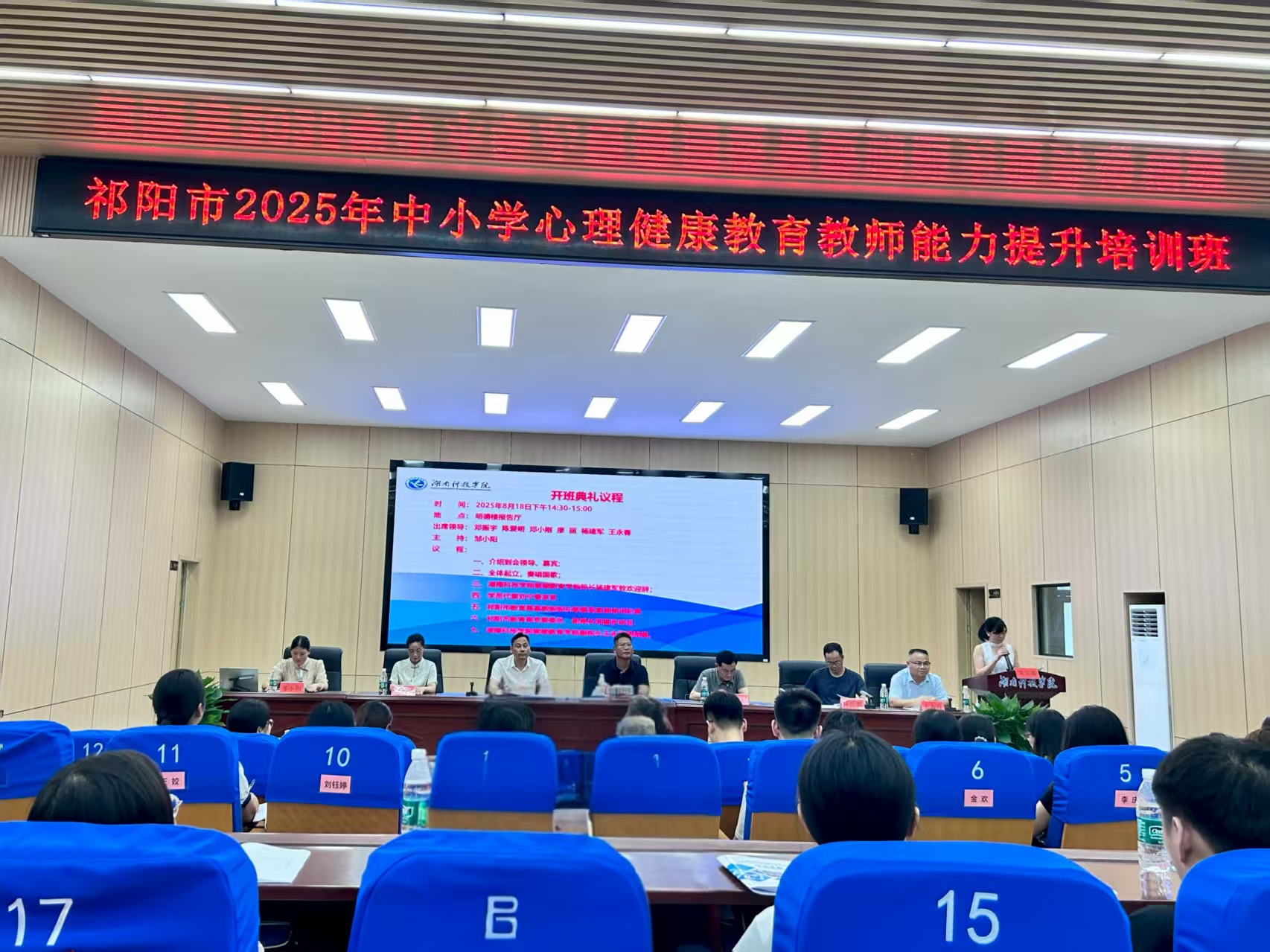 本网讯(通讯员 曹湖云 于碧)8月18日,祁阳市2025年中小学心理健康教育教师能力提升培训班在世界杯官网开班。祁阳市教育局党委委员、副局长邓振宇,祁阳市教师进修学校、2026世界杯官方合作网站继续教育学院相关负责人及80名祁阳市中小学心理健康教育教师参加开班典礼。