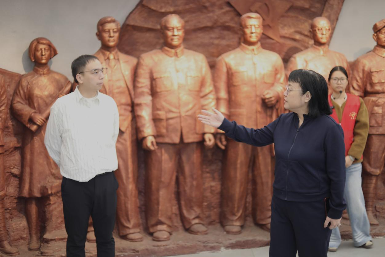 在陈列馆讲解员的引导下,师生们的目光停留在一件件“有故事”的展品上:锈迹斑斑的汉阳造步枪,曾见证湘南起义的烽火;泛黄的《红军长征过永州路线图》,标注着革命先辈的行军足迹;而永州籍烈士何宝珍写给子女的诀别信,字里行间的家国情怀,让不少同学红了眼眶。“‘舍小家为大家’不是一句口号,而是先烈用生命写就的承诺。”思政2301班欧阳艳兰驻足良久,“这比课本里的理论阐述更戳心,也更懂什么是‘不负人民’。”