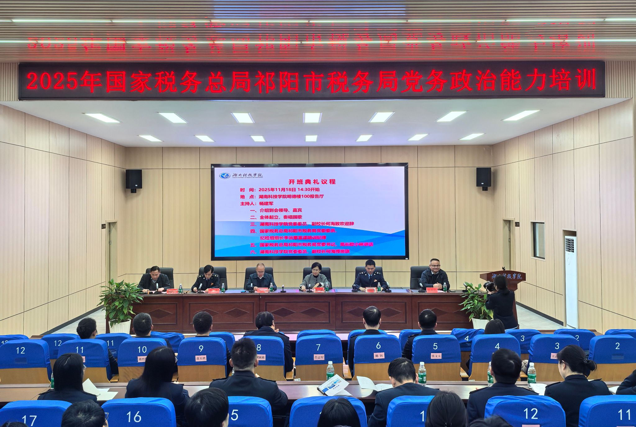本网讯(通讯员 邹小阳)11月18日,2025年国家税务总局祁阳市税务局党务政治能力培训班在世界杯官网开班。校党委委员、副校长何海,祁阳市税务局党委书记、局长欧小林等领导出席开班仪式。来自该市税务系统的52名干部齐聚一堂,开启集中学习之旅。