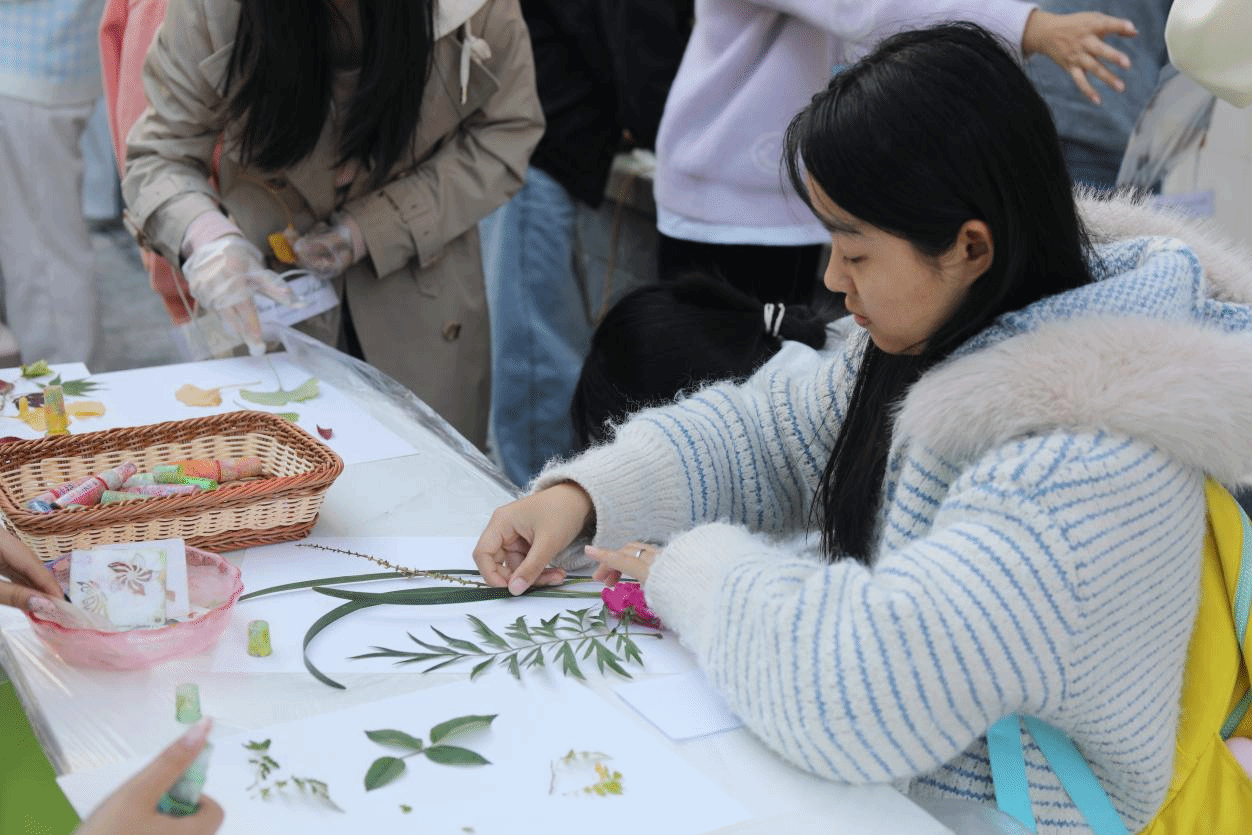 本网讯(通讯员 吴志伟 李诗婷 李嘉瑶)“盯着落叶拼贴的时候,满脑子都是怎么搭配更好看,完全忘了学习的压力!”11月25日下午,鹤鸣楼前坪热闹非凡,马克思主义学院“绘心逐光•自然拾趣”主题活动在此开展。