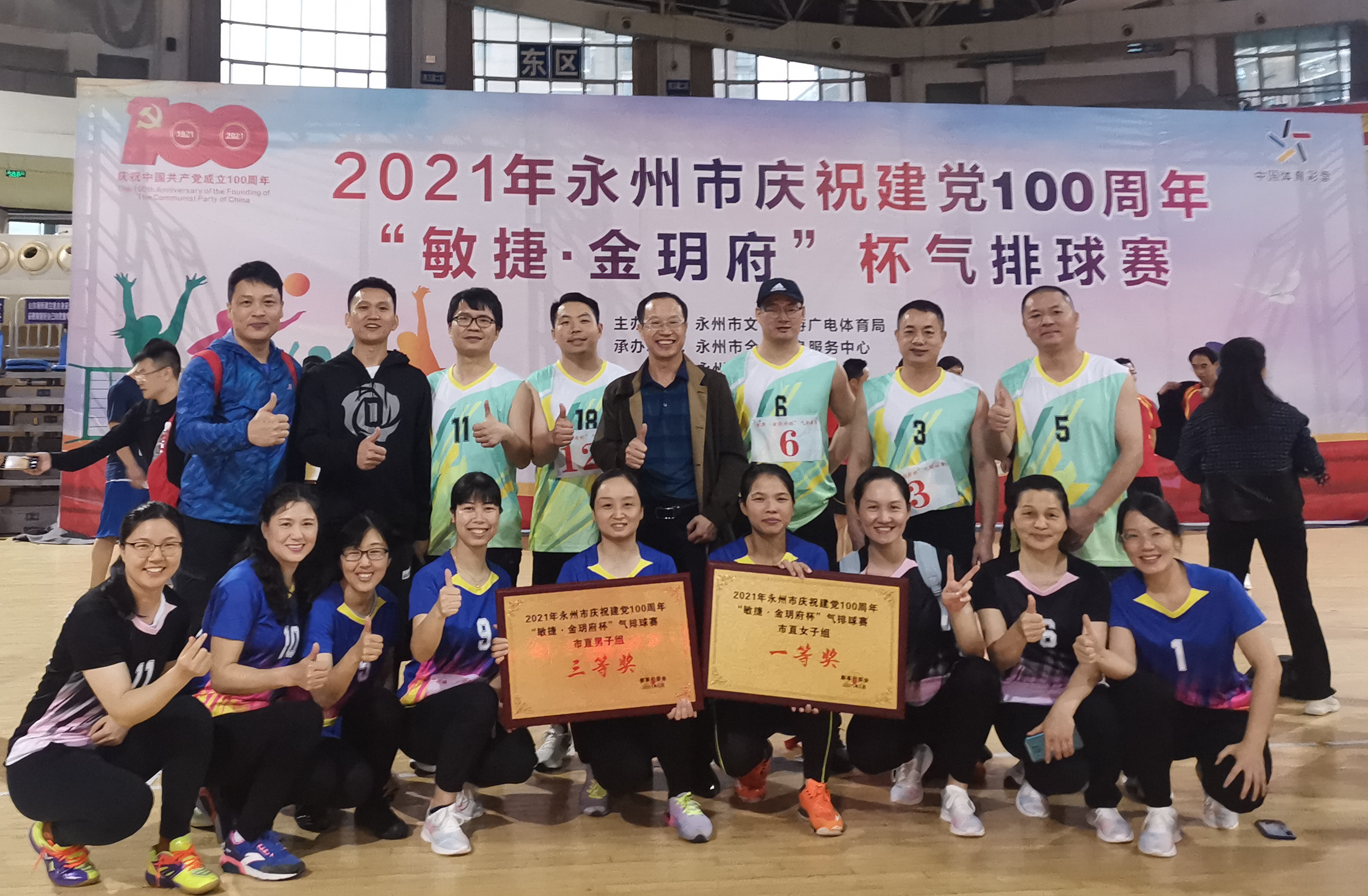 本网讯 5月19日下午,2021年永州市庆祝建党100周年气排球赛在市体育中心落下帷幕,世界杯官网女子气排球队荣获市直单位组冠军,男子气排球队获得三等奖。